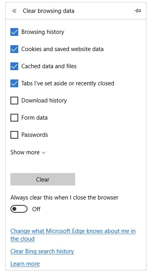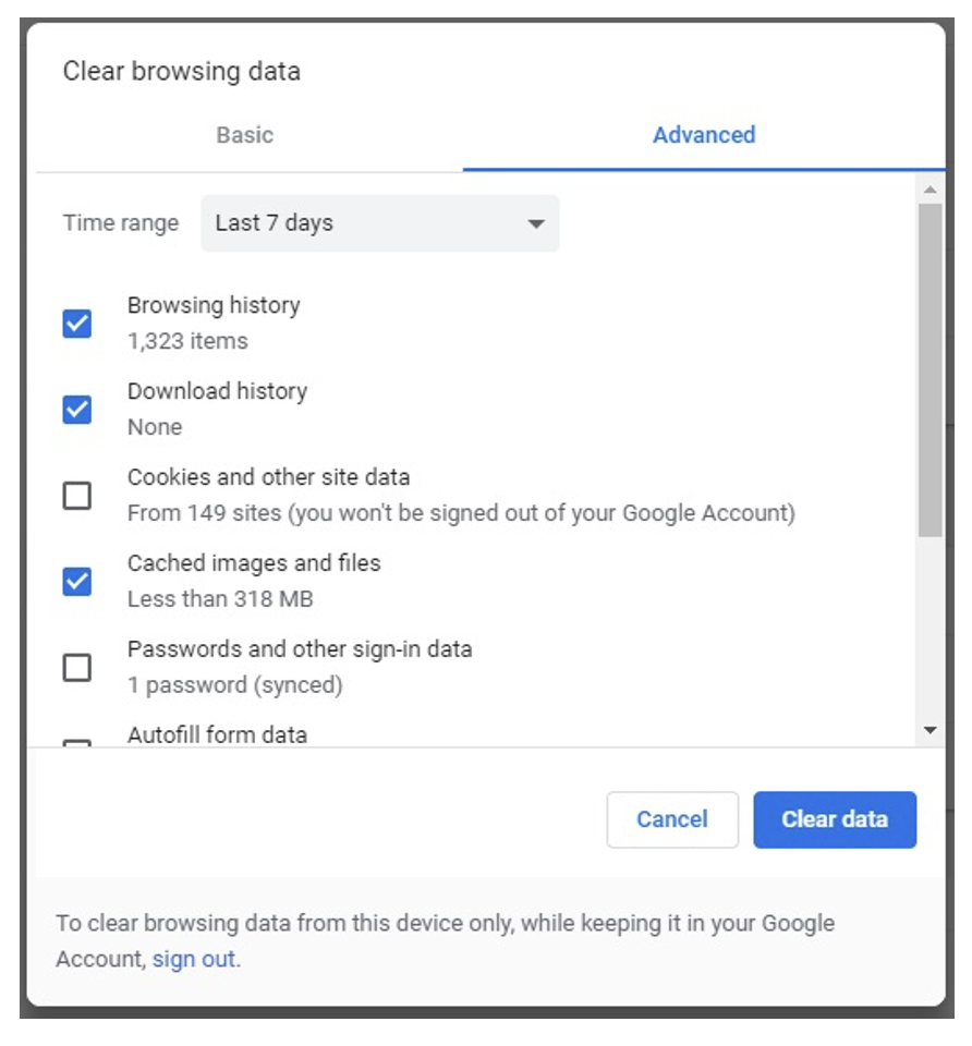 3. 'Çerezler ve diğer site verileri' onay kutusunu seçin.